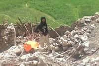 An apparently wounded child is rescued by an Iraqi federal police officer. The place is still under fire by ISIS