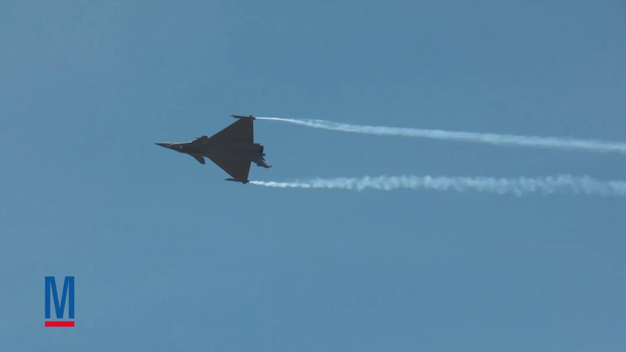 At the 2017 Paris Air Show, host country France shows off its home-grown fighter, the Dassault Rafale, in a flight