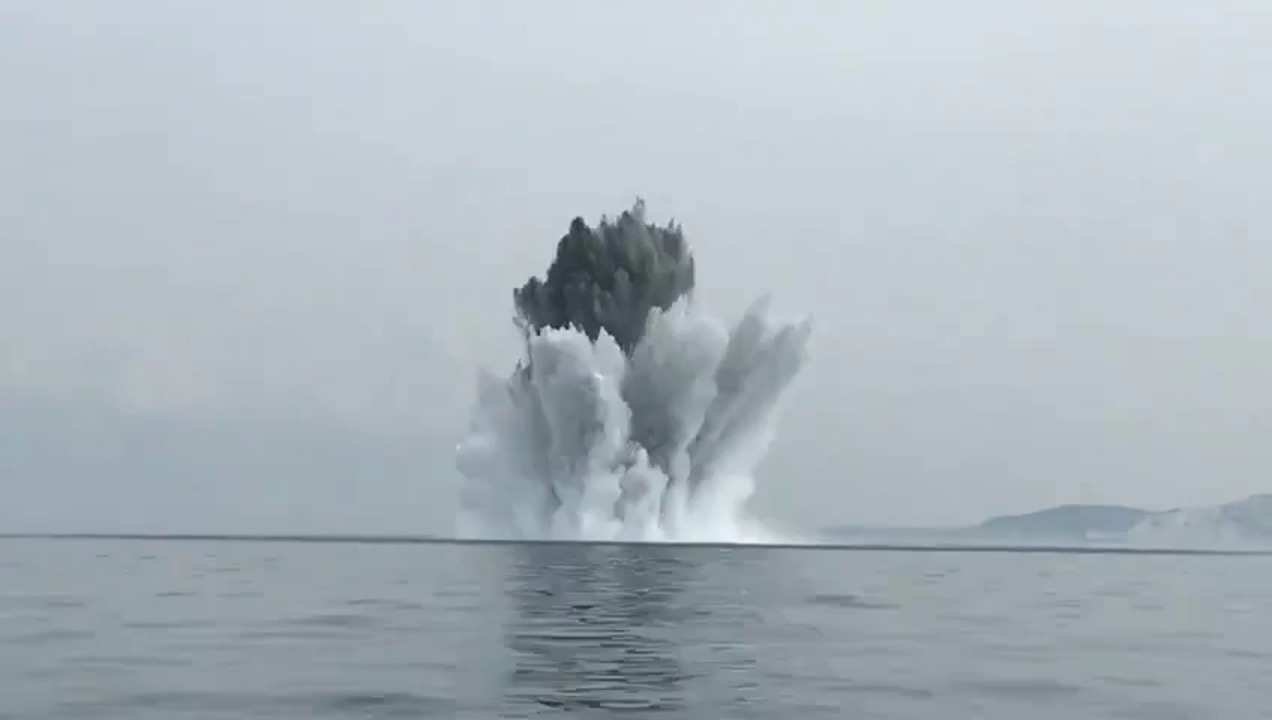 A massive shower of dirt was seen as crews blew up the ordnance.