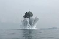 Bomb disposal experts from the Royal Navy's Portsmouth base were called in to detonate a 7ft-long sea mine.