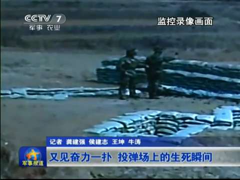A Chinese soldier is saved by his commander after a botched grenade throw.