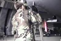 Aircraft mechanic demonstrates one of his other talents and belts out a tune by blowing into the A-10's 30mm gatling