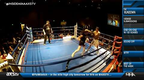 Check out this unbelievable spinning backfist from a 62 year old ex green beret, and two near double KO's.