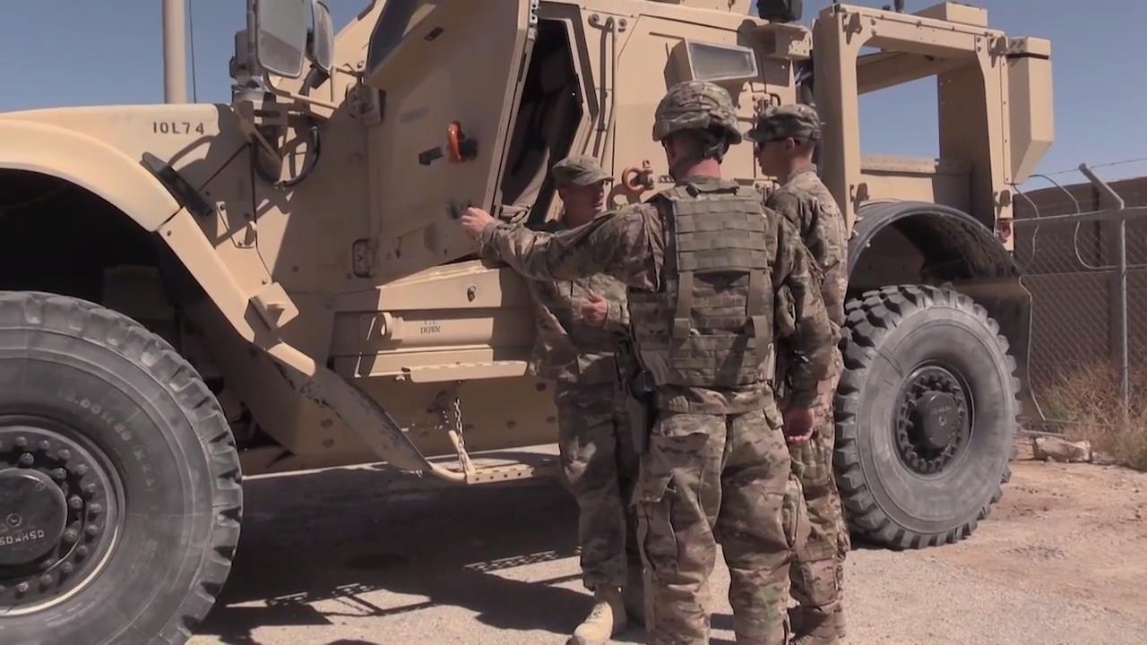 An M1 Abrams tank crew from Battle Company, 1st Battalion, 66th Armor Regiment, 3rd Armored Brigade Combat Team (ABCT), US