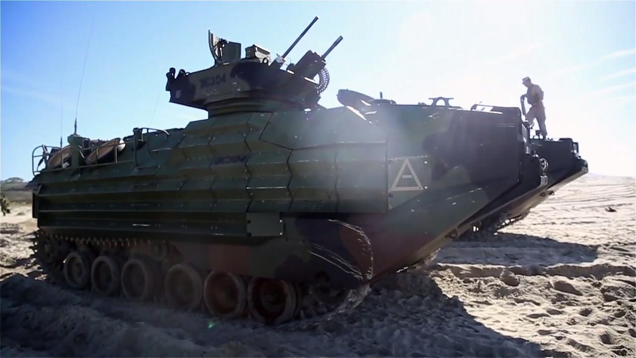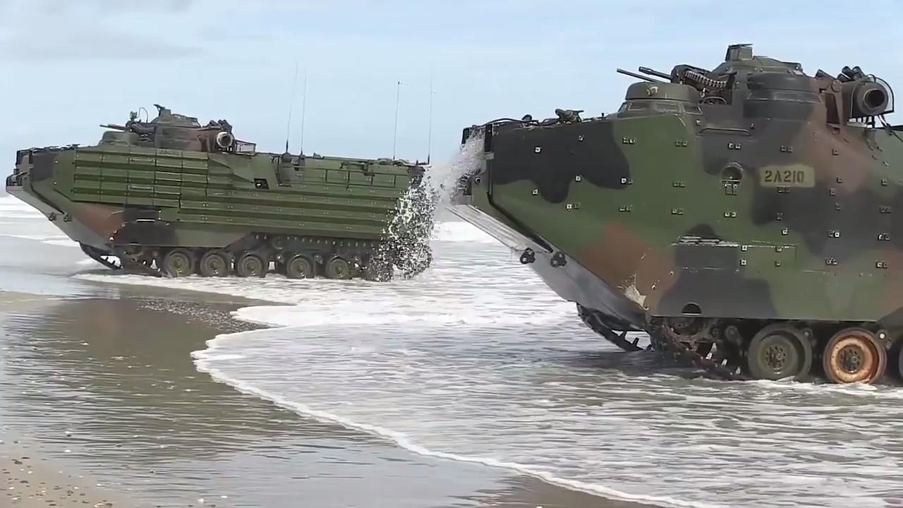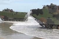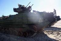 U.S. Marines maneuver AAV-P7/A1 Assault Amphibious Vehicles from shore to sea at Onslow Beach, Camp Lejeune, NC on February 22