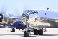 A restored WWII era Boeing B-29 Superfortress, nicknamed "Doc", takes off from McConnell Air Force Base, Kansas and arrives at