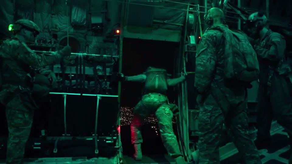 SERE night jump training filmed over Japan on April 13, 2017.