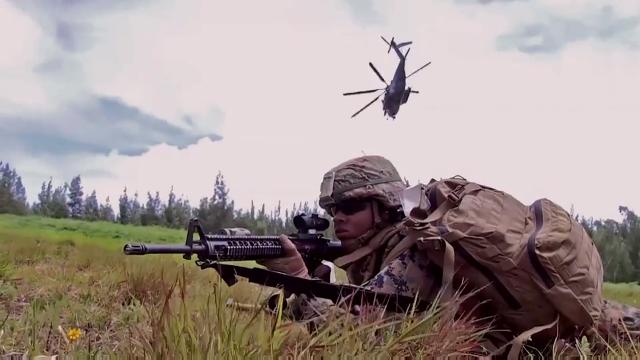 U.S. Marines, Australian Army soldiers and Indonesian Marines conduct a company-size helicopter-borne raid into Kahukus Training Area from USS America.