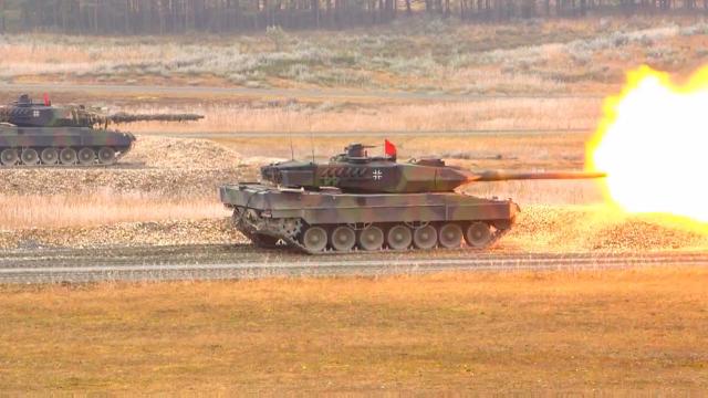 Leopard 2A6 Main Battle Tanks and C1 Ariete Main Battle Tanks battle for supremacy during a live fire competition at