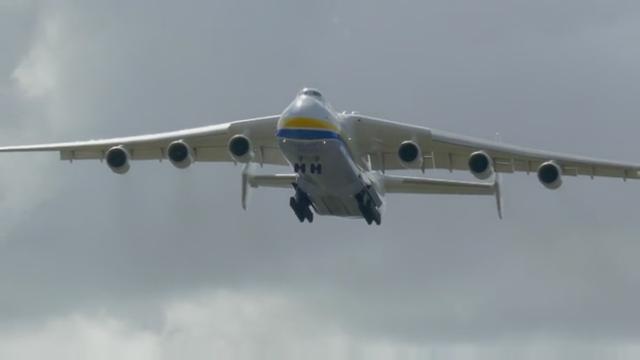 The Antonov AN-225 "Mriya" touches down at an airport in Perth.