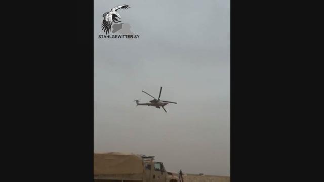 An MI-28 Havoc attack helicopter belonging to the Iraqi army flies overhead around an Iraqi army position in Al Anbar.