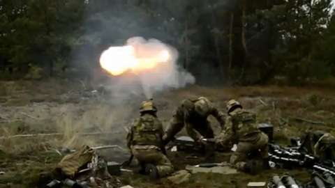 Security camera footage shows the MLRS attack on the Volnovakha checkpoint in Ukraine. In total 12 people were killed and