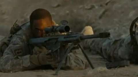 Sniper duel in Iraq featuring the Barrett m107 and the Dragunov sniper rifle (Snayperskaya Vintovka Dragunova or SVD). Not sure