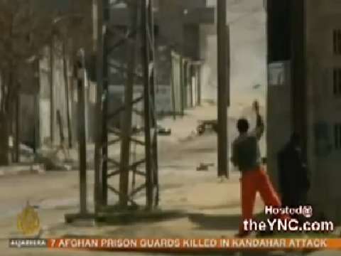 An Israel tank crew fires a round off at Palestinian children who mockingly wave at the tank. Damn that was