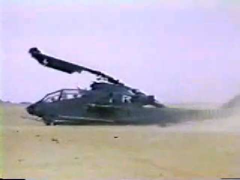 Cobra crashes when attempting to takeoff in a brownout in Iraq. No one was seriously injured.