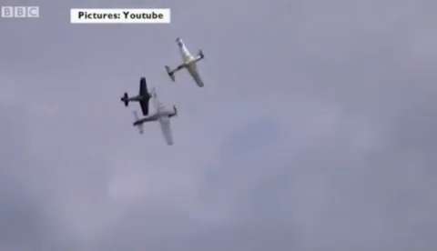 Original footage of the crash. A P-51 Mustang and a Skyraider on Sunday at the Flying Legends Air Show at