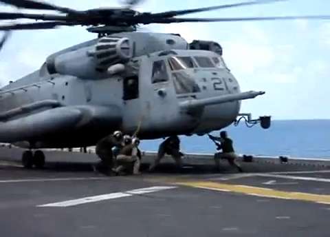 CH-53E lands with nose landing gear stuck up untile maintenance try to lower it.