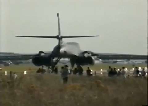 Aviation enthusiasts blown away by the Bone's engines at full power with afterburners too. Funny video! Filmed at RAF Base