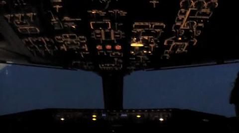 View from the cockpit showing the coronal discharge known as St. Elmo’s fire (actually plasma not fire). The electric field