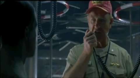 A classic scene between the captain of the Naval submarine USS Alabama (Hackman) who has received launch orders but the