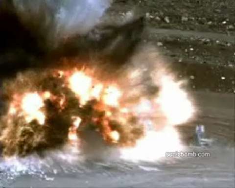 Jersey Carbomb - Explosive test of a car bomb against a Jersey barrier. The test was in New Mexico and