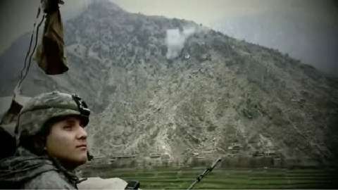 Korengal Valley -- US soldiers order the mortar bombardment of a ridge often used by insurgents in the valley to