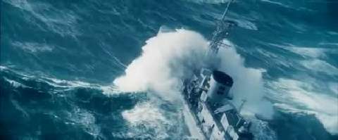 Check out the wave the last ship hits.