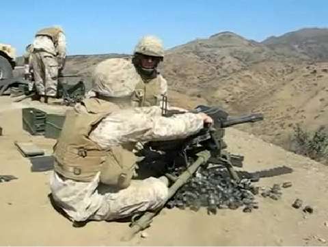 Two Iraqi insurgents planting an IED are engaged by a Predator Drone Hellfire missile.