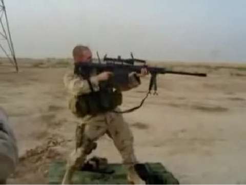 The real life Halo. Soldier fires the M107 Barrett .50 Caliber Sniper Rifle while standing.