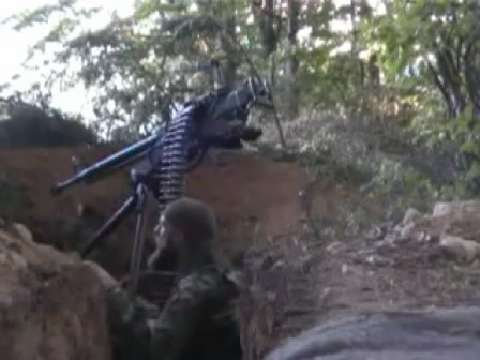 2001 - Kosovo Liberation Army fighter has one very close call with an incoming round. Time to return fire.