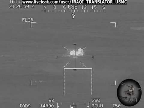 AH-64 engage insurgents with two Hellfire missiles after the two Apaches take fire from insurgents in Iraq.