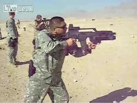 US Soldier fires a G36 on a shooting range in Afghanistan.