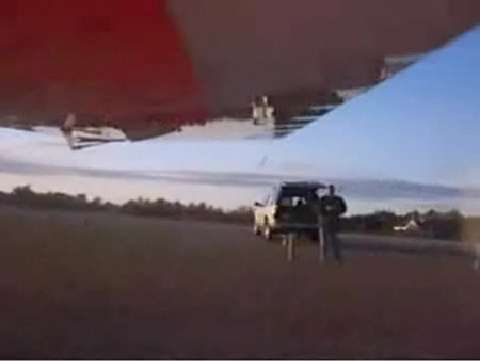 Onboard a light aircraft as pilot executes a dead stick landing after engine failure. Engine suffers exhaust manifold and crank