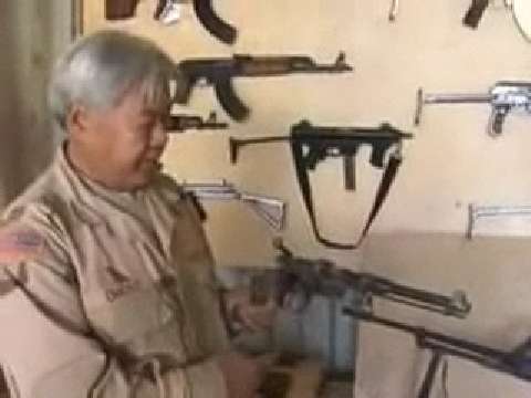 Mr. Lee Omoso, a small arms special advisor at Camp Taji Iraq, shows off a few of the interesting weapons