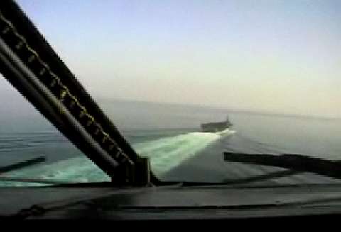 Video footage of an A-6 approaching an aircraft carrier and landing. It was taken from the cockpit by the co-pilot.