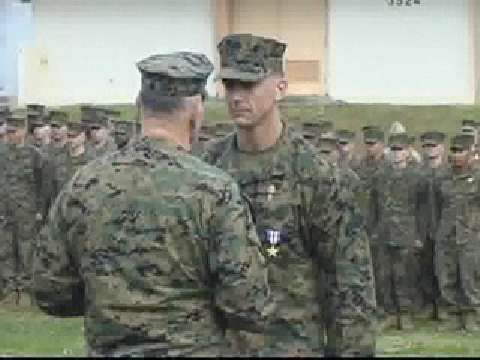 Marine Corps Gunnery Sergeant Robert Blanton receives the Silver Star on Okinawa for his actions in Iraq.