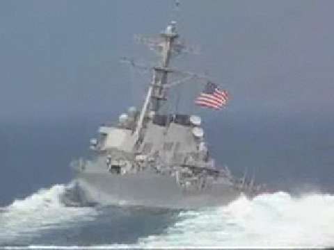 Navy Destroyer Makes High Speed Turn