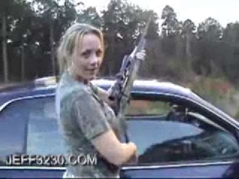 Woman busts movie myths about guns, cigs and gasoline using a 270 rifle.