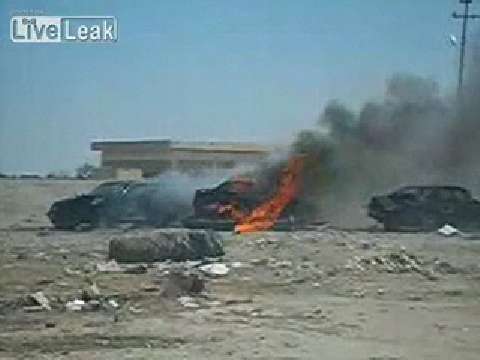Mk 19 takes out confiscated insurgent vehicles in Iraq.