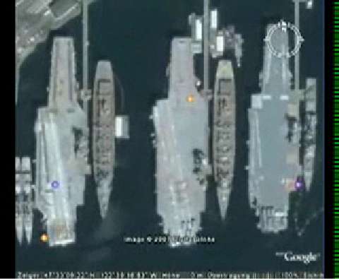 Military places on google earth. you can see an airplane graveyard, nuclear weapon craters, airplane carriers and b52-bombers with nuclear