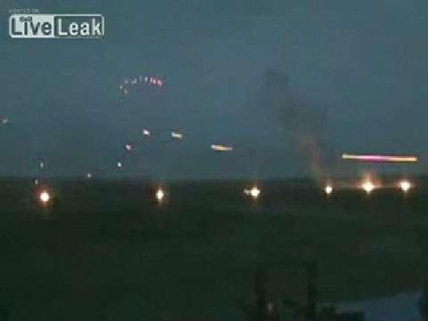 Group of people firing thousands of tracer rounds into the night sky. Nice alternative to fireworks...