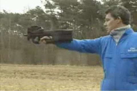 Taken from P90 Promo video. Guy shoots the P90 with one hand. This video shows the very low recoil on