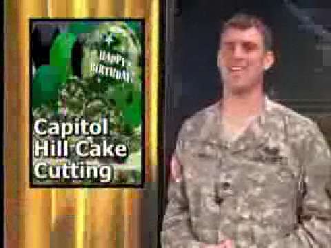 Capitol Hill cake cutting and reception. Includes sound bite from Sgt. Major of the Army Preston.