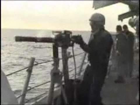 These Sailors get in some gunnery practice on a target boat with the Mk 38 Mod 0 25mm Bushmaster chaingun.