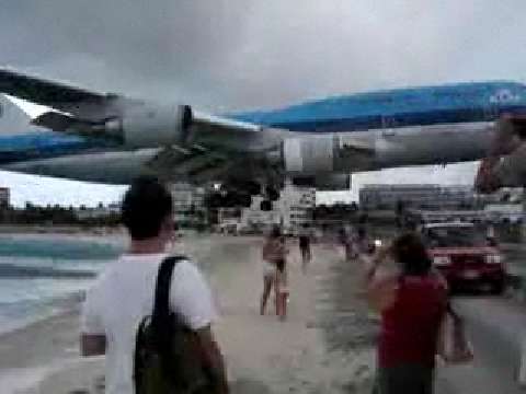 Check out this extremely low landing by this KLM Royal Dutch Airlines 747 in St. Maarten.