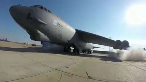 B-52 aircrews perform a minimum interval takeoff (MITO) at Barksdale Air Force Base. A MITO is designed by the United
