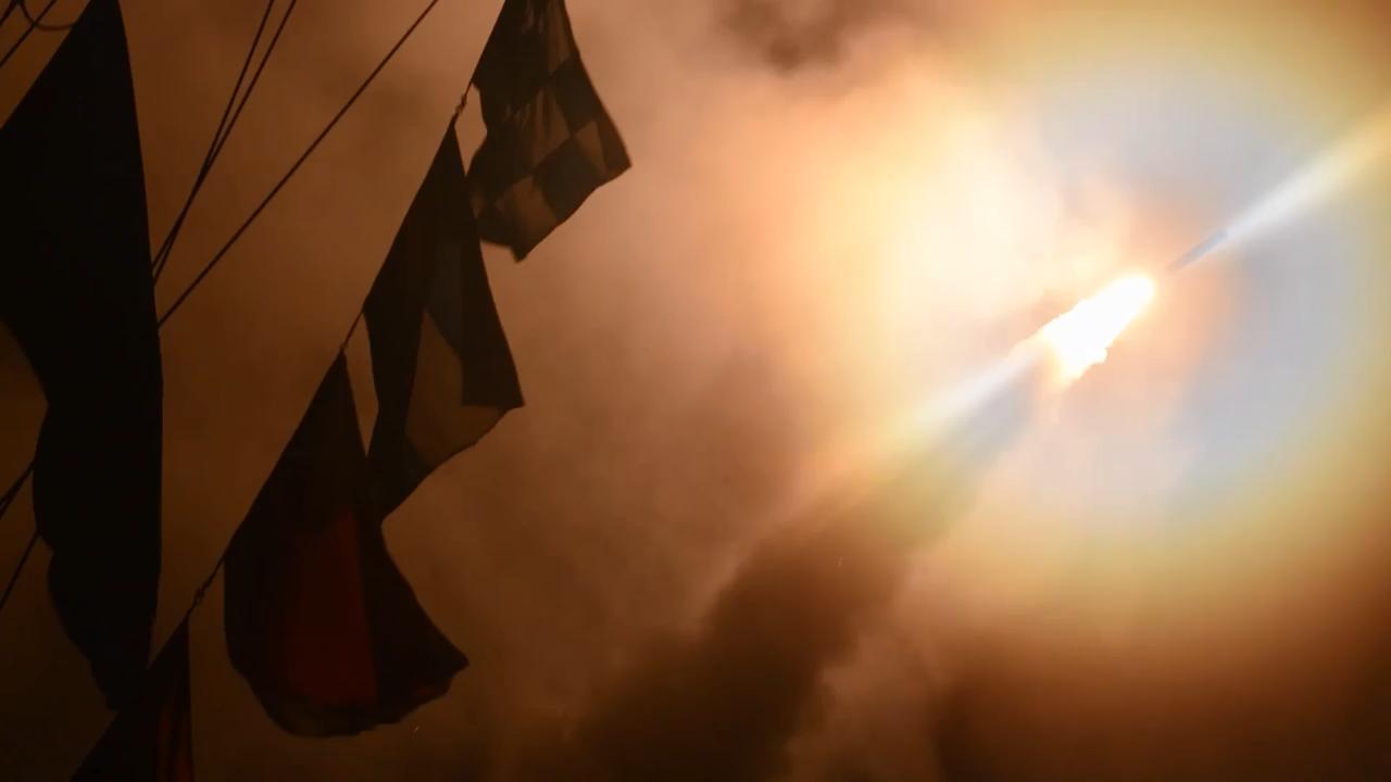 The guided-missile destroyer USS Laboon (DDG 58) fires a Tomahawk land attack missile April 14, 2018. Laboon is deployed to