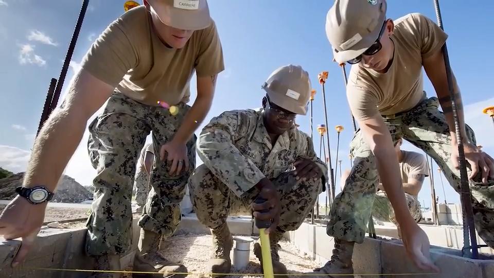 Seabees assigned to Naval Mobile Construction Batallion (NMCB) 133 build a shower and restroom facility at Polaris Point. NMCB-133 is