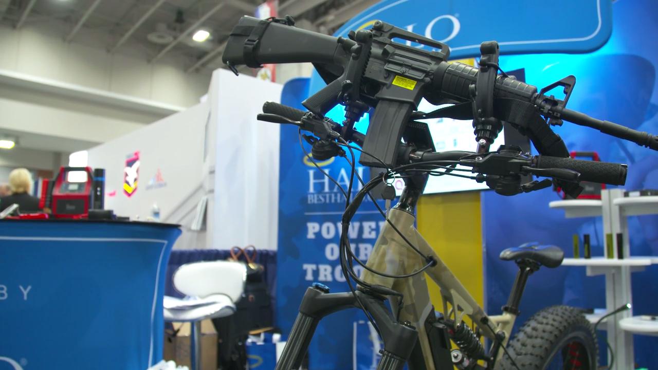 The Halo e-Bike is an electrically powered bicycle that tops 50 miles per hour. It even comes with a gun