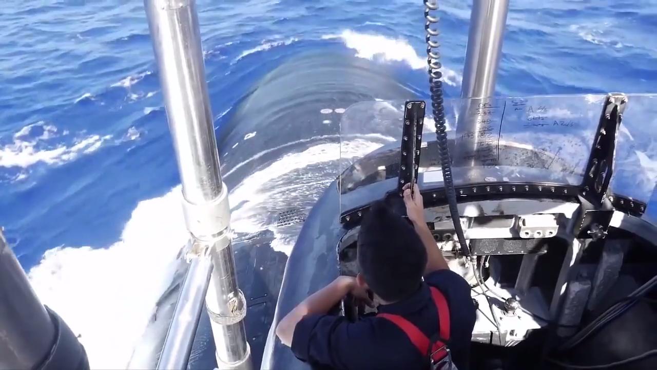 View from the conning tower of a U.S. Navy fast-attack submarine, the nuclear powered USS Texas (SSN-775) underway in the